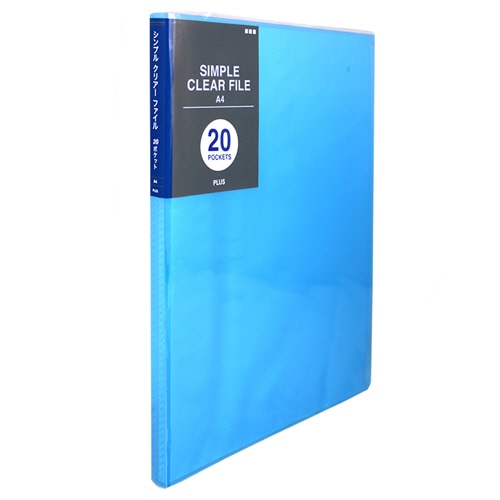 プラス シンプルクリアーファイル A4タテ 20ポケット 背幅10mm ブルー FC-220SC 1冊