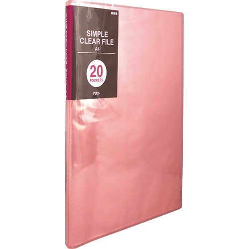 プラス シンプルクリアーファイル A4タテ 20ポケット 背幅10mm ピンク FC-220SC 1冊
