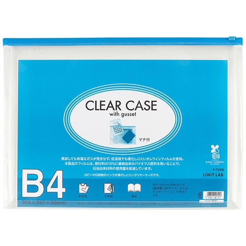 リヒトラブ クリヤーケース(マチ付) B4ヨコ 藍 F-75SM 1枚
