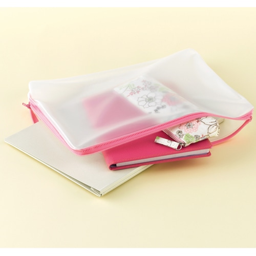 リヒトラブ クリヤーケース・スモーキィ(マチ付) A4ヨコ 桃 F-277 1枚