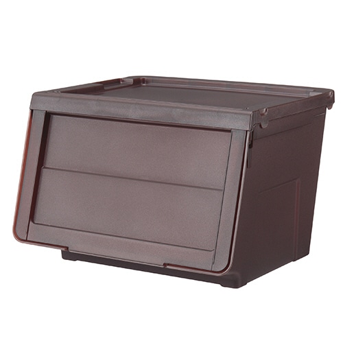 ●スムーズなスライド展開、カバのような大きな口、ラクラク出し入れできるクリアブラウンの収納ボックスMサイズです。