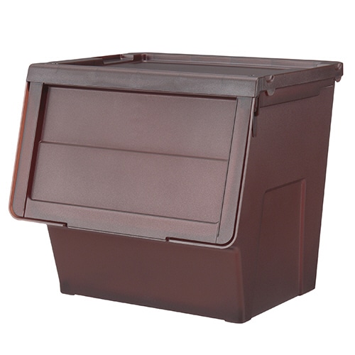●スムーズなスライド展開、カバのような大きな口、ラクラク出し入れできるクリアブラウンの収納ボックスLサイズです。