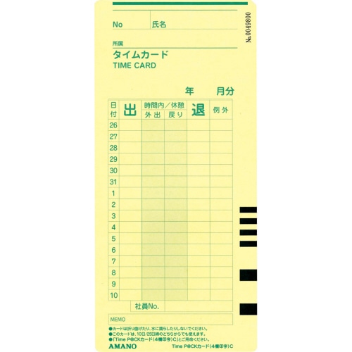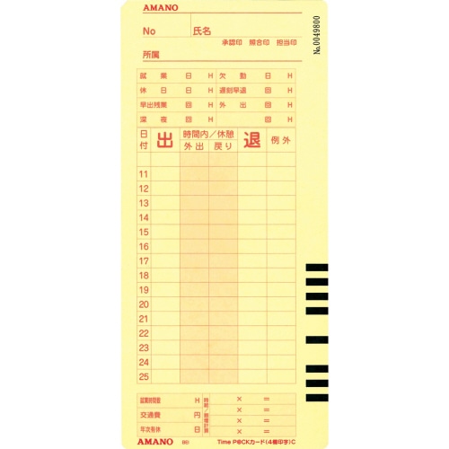 アマノ TimeP@CKカード 4欄印字C(25日締め/10日締め) 1パック(100枚)