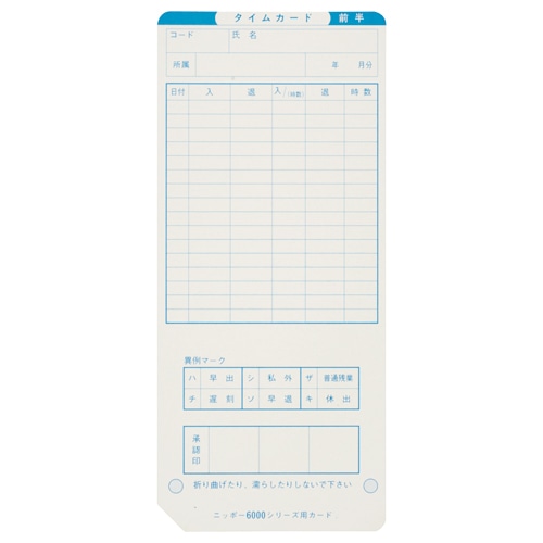 武藤工業 ニッポー用タイムカード 6000シリーズカード 1パック(100枚)