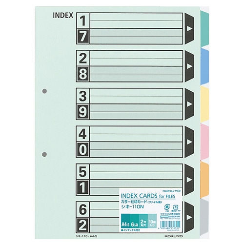 コクヨ カラー仕切カード(ファイル用・6山見出し) A4タテ 2穴 6色+扉紙 シキ-110N 1パック(10組)