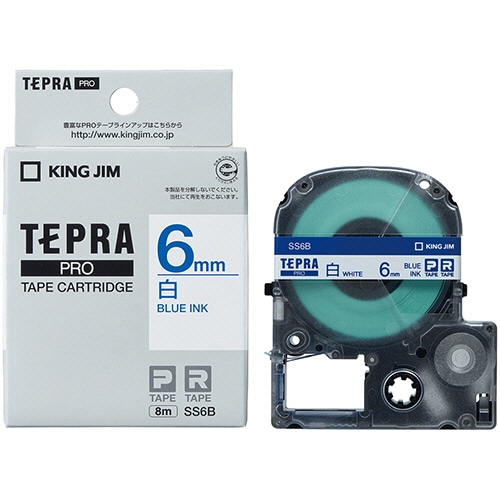 キングジム テプラ PRO テープカートリッジ 6mm 白/青文字 SS6B 1個