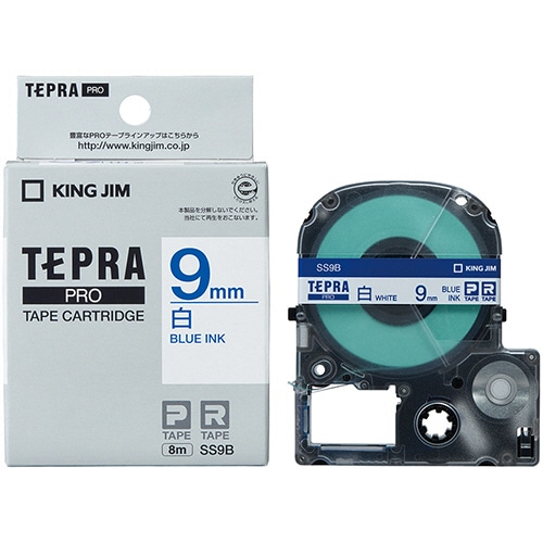 キングジム テプラ PRO テープカートリッジ 9mm 白/青文字 SS9B 1個