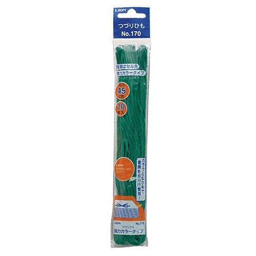 ライオン事務器 カラーつづりひも 450mm 緑 セル先 アクリル糸32本織 No.170 1パック(20本)