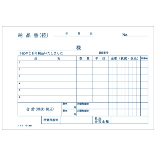 コクヨ NC複写簿(ノーカーボン)3枚納品書(請求付き) A6ヨコ型 6行 50組 ウ-347 1冊