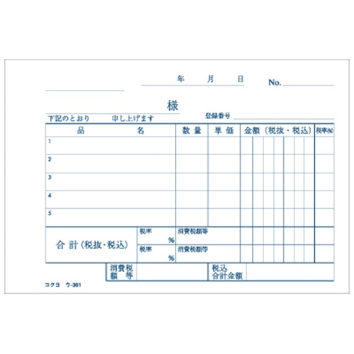 コクヨ NC複写簿(ノーカーボン)仕切書 B7ヨコ型 2枚複写 5行 50組 ウ-361 1冊