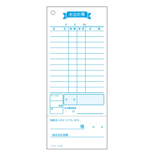コクヨ お会計票(勘定書付) 177×75mm 100枚 テ-273 1冊