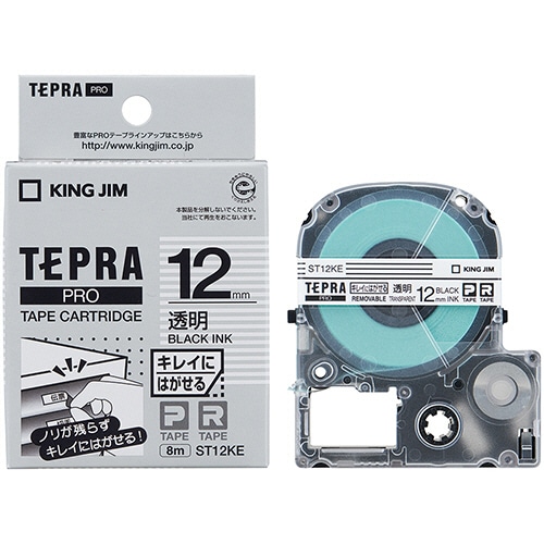 キングジム テプラ PRO テープカートリッジ キレイにはがせるラベル 12mm 透明/黒文字 ST12KE 1個