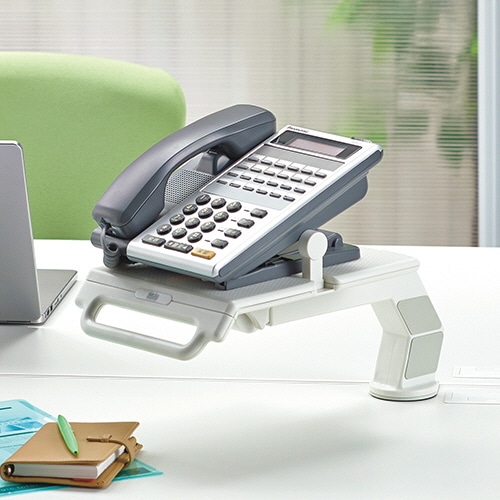 人間工学的(エルゴノミクス)視点でデザインした快適設計の電話台。デスクスペースを有効活用できます。