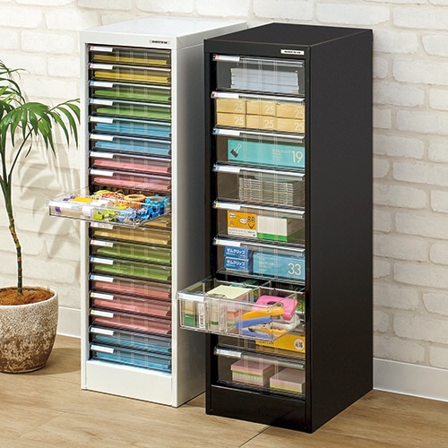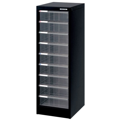 商品仕様 | ●サイズ/A4タテ ●段数仕様/深9段 ●外寸/W277×D336×H880mm ●引出内寸/W233×D307×H80mm ●色/クロ ●材質/本体:スチール・紛体焼付塗装、引出し:透明スチロール樹脂、引出し段板:ポリプロピレン ●重量/8.9kg ●付属品/カラー分類タイトルシール付 ●その他仕様/●仕切板対応 ●備考/※仕切り板は付属しておりません。 ●シリーズ名/アバンテV2 |