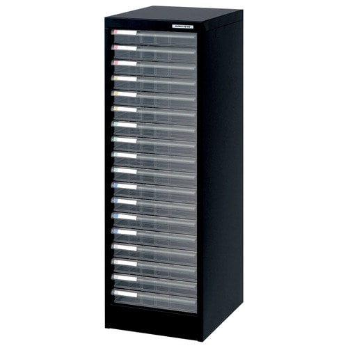 商品仕様 | ●サイズ/A4タテ ●段数仕様/浅18段 ●外寸/W277×D336×H880mm ●引出内寸/W233×D307×H36mm ●色/クロ ●材質/本体:スチール・紛体焼付塗装、引出し:透明スチロール樹脂、引出し段板:ポリプロピレン ●重量/10.5kg ●付属品/カラー分類タイトルシール付 ●その他仕様/●仕切板対応 ●備考/※仕切り板は付属しておりません。 ●シリーズ名/アバンテV2 |