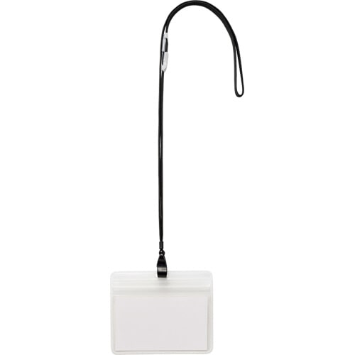 ●大きめの防水チャック付吊り下げ名札。ストラップ色は黒です。
