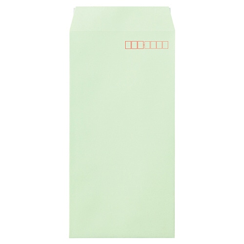 ●郵便番号枠ありの長3・ワカクサ色の封筒です。