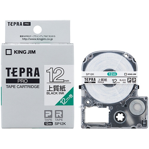 キングジム テプラ PRO テープカートリッジ 上質紙ラベル 12mm 白/黒文字 SP12K 1個