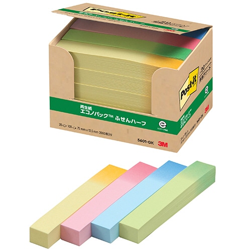 3M ポスト・イット エコノパック ふせんハーフ 再生紙 75×12.5mm グラデーション4色 5601-GK 1パック(20冊)
