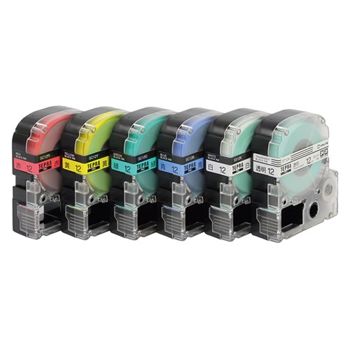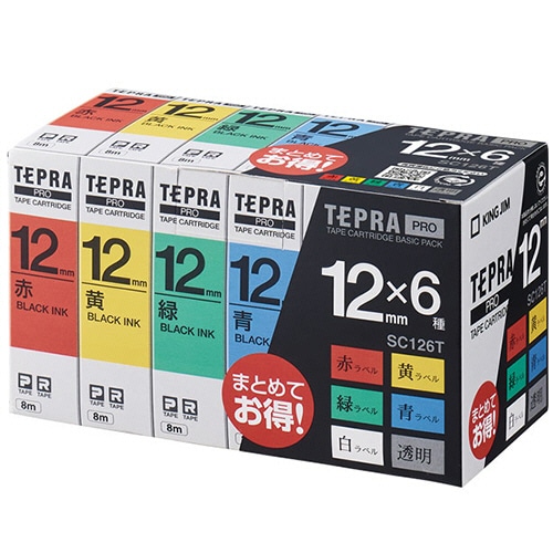 キングジム テプラ PRO テープカートリッジ ベーシックパック 12mm 赤・黄・緑・青・白・透明/黒文字 SC126T 1パック(6個:各色1個)