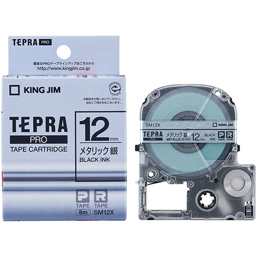 キングジム テプラ PRO テープカートリッジ カラーラベル(メタリック) 12mm 銀/黒文字 SM12X 1個