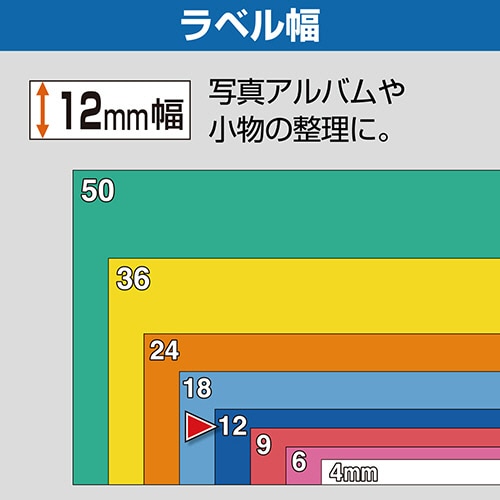 | 商品仕様 | ●テープ種類/カラーラベル(メタリック) ●テープ幅/12mm ●テープ長さ/8m ●テープ色/銀 ●文字色/黒 ●シリーズ名/TEPRA |
