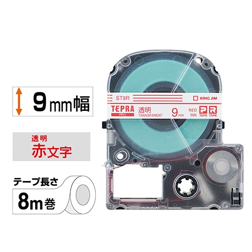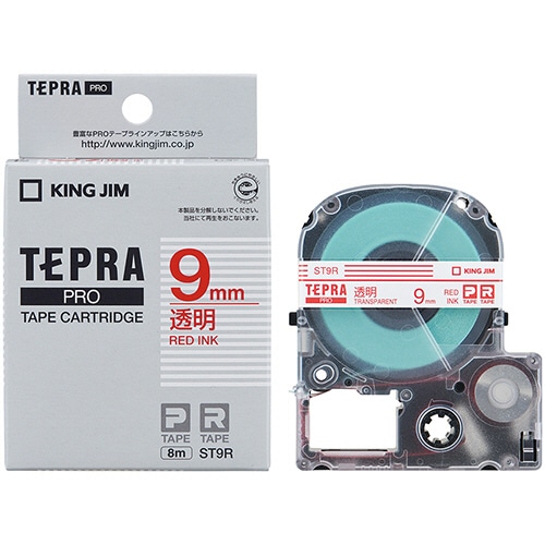 キングジム テプラ PRO テープカートリッジ 9mm 透明/赤文字 ST9R 1個