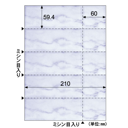 | 商品仕様 | ●サイズ/A4 ●シートサイズ/210×297mm ●カードサイズ/59.4×210mm ●面付け/5面 ●紙質/上質紙 ●紙色/マリン ●坪量/81.4g/m2 ●カードの厚み/0.1mm ●その他仕様/●対応プリンタ:カラーレーザープリンタ・モノクロレーザープリンタ・カラーインクジェットプリンタ(染料・顔料対応)・カラーコピー機・モノクロコピー機・モノクロレーザー機・熱転写プリンタ対応 ●印刷面:両面印刷可能 ●ミシン目:クリアカットミシン ●半券のサイズ:59.4x60mm ●備考/※地紋入り ※裏面は白無地です。 ※ご使用のプリンタで使用可能な紙厚の範囲をお確かめください。 ※インクジェットプリンタでは裏移りする可能性があります。 ※メーカーホームページより印刷用ソフト「ヒサゴ工房」を無料でダウンロードできます。 |