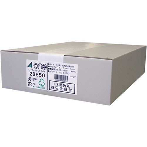 エーワン ラベルシール[レーザープリンタ] マット紙・ホワイト A4 18面 63.5×46.5mm 四辺余白付 角丸 28650 1箱(500シート)