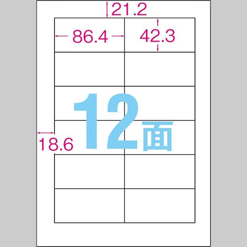 商品仕様 | ●サイズ/A4 ●シートサイズ/210×297mm ●ラベルサイズ/42.3×86.4mm ●面付け/12面 ●カット内容/2列×6段 ●紙質/上質紙 ●総厚み/約0.135mm ●白色度/約84% ●紙色/白無地 ●備考/※厚紙モード、手差し給紙でお使いください。また、お使いの機種によっては対応しない場合がございます。 ※インクジェットプリンタの場合、にじみが生じる場合がございます。 |