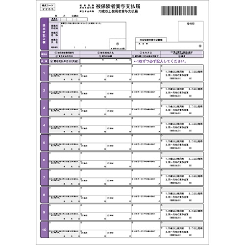 | 商品仕様 | ●様式/健保賞与支払届 ●サイズ/A4タテ ●寸法/297×210mm ●複写枚数/単票 ●坪量/70g/m2 ●厚み/約0.09mm ●白色度/80% ●備考/※2021年12月頃より順次、原紙の変更に伴い白色度が約78%→約80%に変更になります。 |