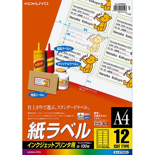 コクヨ インクジェットプリンタ用 紙ラベル A4 12面 42×84mm KJ-2762N 1冊(100シート)