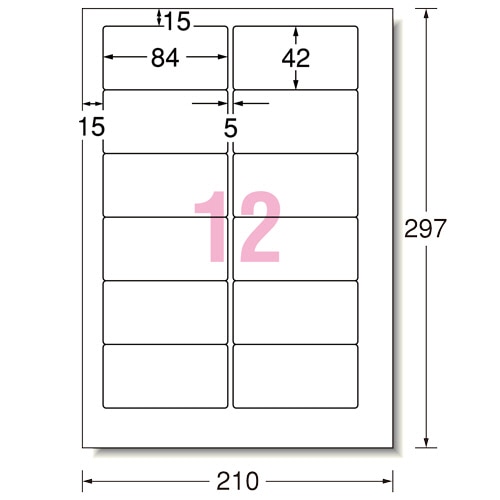 | 商品仕様 | ●サイズ/A4 ●シートサイズ/210×297mm ●ラベルサイズ/42×84mm ●面付け/12面 ●カット内容/2列×6段 ●紙質/上質紙 ●坪量/120g/m2 ●総厚み/0.13mm ●白色度/81% ●紙色/白無地 ●その他仕様/●手書き対応 ●備考/※厚紙モード、手差し給紙でお使いください。 ※お使いの機種によっては対応しない場合がございます。 |
