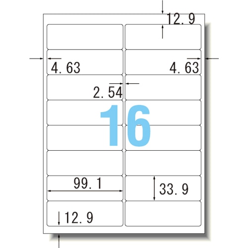 コクヨ モノクロレーザー&モノクロコピー用 紙ラベル(スタンダードラベル) A4 16面 99.1×33.9mm LBP-7162N 1冊(20シート)