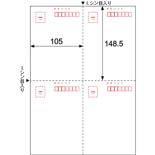 ミシン目で切り離しできる、郵便番号枠入りはがき用紙