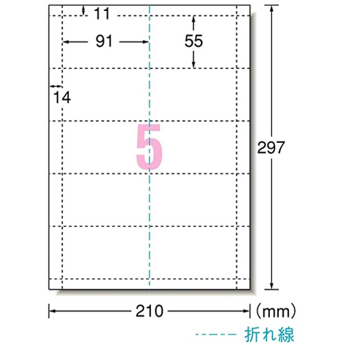 エーワン マルチカード 各種プリンタ兼用紙 白無地 A4 5面 名刺2つ折りサイズ 51077 1冊(10シート)