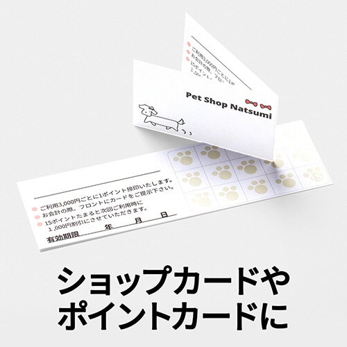 ●2つ折り名刺・診察券・会員証等に便利なサイズの短辺2つ折りマルチカード、10シート入です。