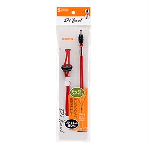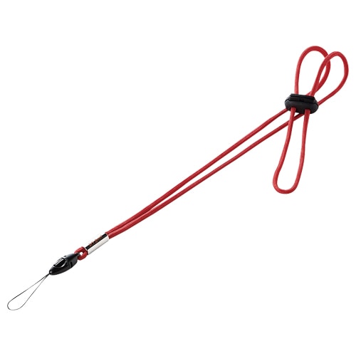 ●シンプルな細紐タイプのネックストラップ。カラーはレッドです。