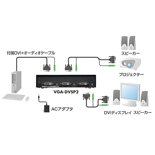 サンワサプライ フルHD対応DVIディスプレイ分配器 2分配 VGA-DVSP2 1台