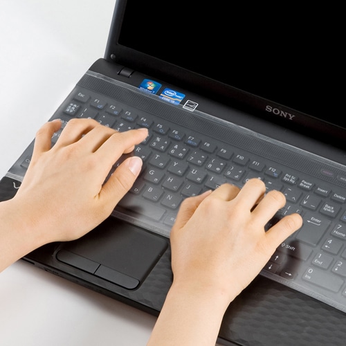 透明で薄い素材ですので、かけたまま快適な入力作業が行えます。