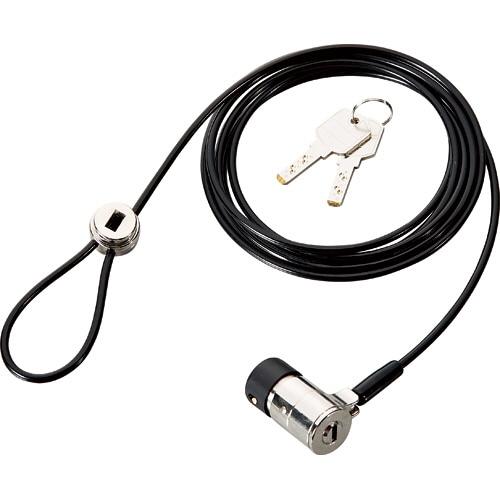 | 商品仕様 | ●錠タイプ/回転可動スプリング式ディンプルキータイプ ●ワイヤー径/4mm ●ワイヤー長/1.8m ●錠部サイズ/直径20mm ●材質/ワイヤー部:スチール、皮膜:PVC ●その他仕様/●適用機種:ノートパソコン、デスクトップパソコン、周辺機器等(セキュリティスロットを有する機器) ●セット内容/本体×1本、鍵×2個 ●備考/※機器側の規格により、スロットの深さが合わない場合があります。 |