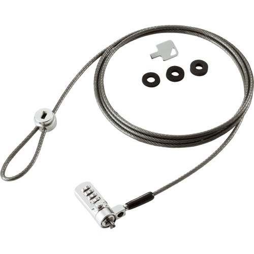 商品仕様 | ●錠タイプ/ダイヤル錠式ロック ●ワイヤー径/4mm ●ワイヤー長/2m ●錠部サイズ/W49×H28×D18mm(突起物を除く) ●材質/ワイヤー:スチール、皮膜:PVC、設定キー:スチール(メッキ処理)、スぺーサー:ウレタン ●その他仕様/●適用機種:ノートパソコン、デスクトップパソコン、周辺機器等(セキュリティスロットを有する機器) ●セット内容/本体×1、スペーサー×3、設定キー×1 ●備考/※機器側の規格により、スロットの深さが合わない場合があります。 |