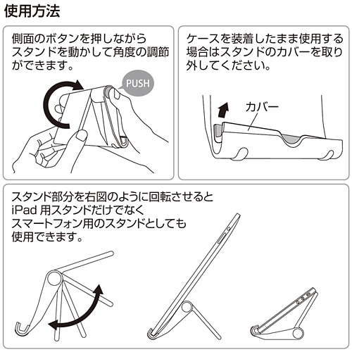 ●スタンドのカバーを取外すと、ケース装着状態でも使用することができます。