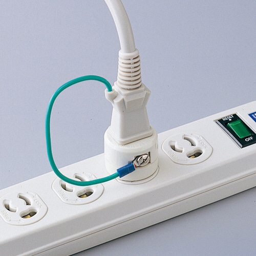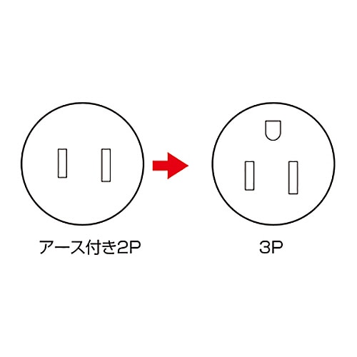 2Pアース端子付きプラグを3Pプラグに変換できる変換アダプタ。