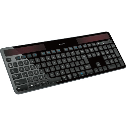 ●ソーラーパネル搭載で、室内照明で自動的に充電できる省エネタイプのワイヤレスキーボードです。