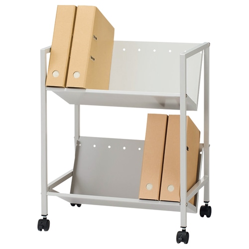 | 商品仕様 | ●外寸/W565×D370×H675mm ●重量/5.8kg ●色/ライトグレー ●段数/2段 ●耐荷重/総耐荷重:30Kg、棚:15kg ●材質/本体:スチール(粉体塗装)、キャスター:ナイロン ●脚部仕様(キャスター/アジャスター)/キャスター(ストッパー付2個) ●必要工具/プラスドライバー ●製造国/日本 ●備考/※仕切棒は付属されておりません。別途お求めください。 |
