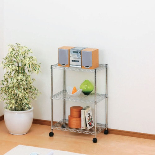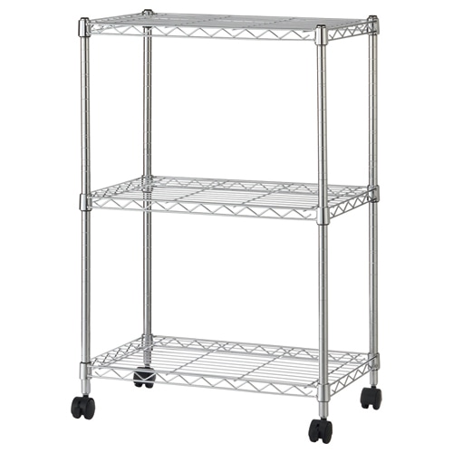 商品仕様 | ●本体/パーツ/本体 ●寸法/W550×D350×H830mm ●重量/5.4kg ●段数/3段 ●棚板ピッチ/25mm ●耐荷重/棚板:50kg、全体(静止時):150kg、全体(移動時):75kg ●材質/ポール・棚板:スチール(クロームメッキ)、棚板固定部品:ABS、キャスター:ナイロン ●脚部仕様(キャスター/アジャスター)/キャスター ●カギ/なし ●必要工具/ゴムハンマー ●製造国/中国 ●付属品/キャスター(ストッパー付2個、ストッパーなし2個) ●備考/※耐荷重はシェルフ1枚あたりです。 |