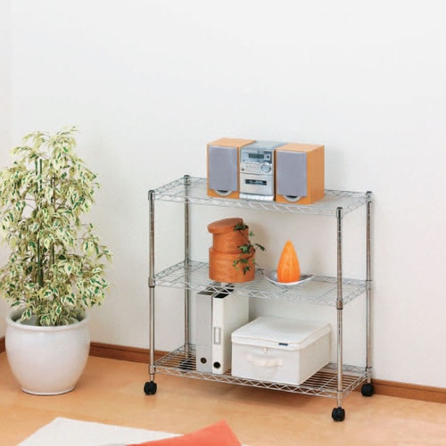 ●材質/ポール・棚板:スチール(クロームメッキ)、棚板固定部品:ABS、キャスター:ナイロン