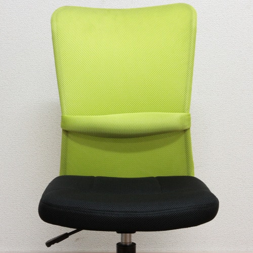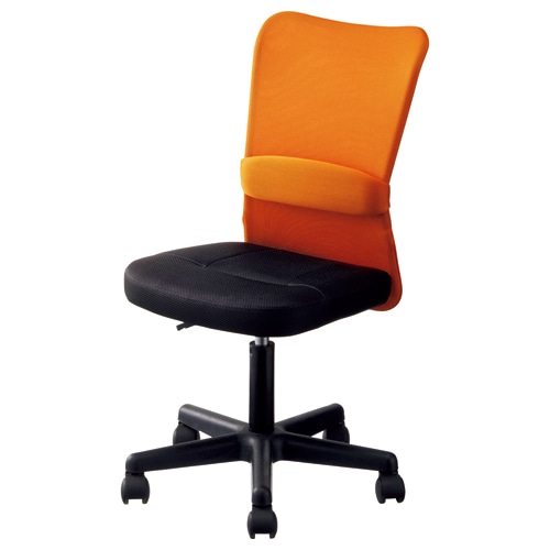 ●肘なしタイプのメッシュチェアー。色はオレンジです。