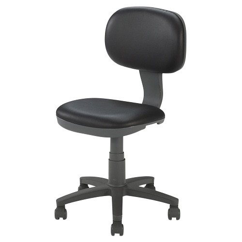 ●ローバック、PVCレザー、肘なしのOAチェアーのブラックです。